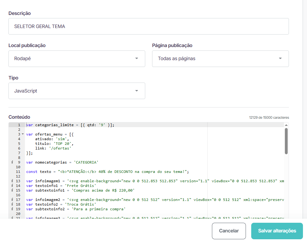 ⚠️ Após realizar qualquer modificação e publicação no tema, recomendamos: